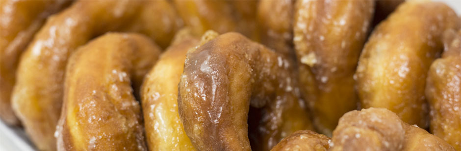 Spalding's Bakery is a family-owned business that has been hand-forming doughnuts since 1929. The "original" is a glazed, yeast doughnut that melts in your mouth fresh from the glazer. Spalding's Bakery also offers filled doughnuts, cake doughnuts, cinnamon rolls, brownies, cakes, cupcakes, and more!